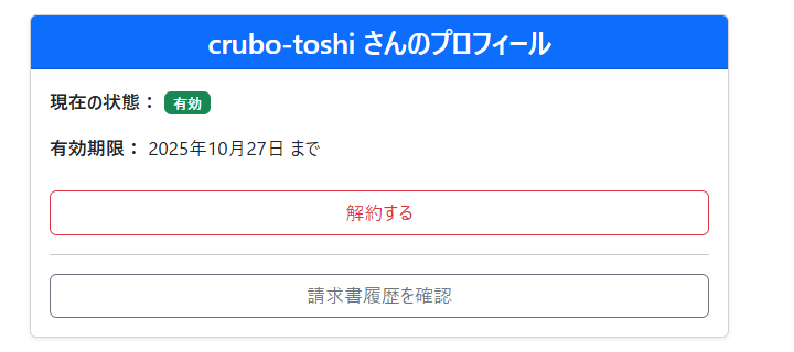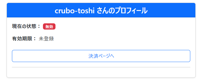 必要情報を記入後登録をするとプロフィールページで決済をすることが出来ます。