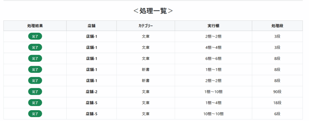 店舗の選択ページ下部に本日の処理一覧が表示されています。